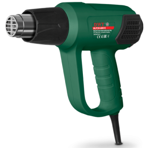 Фен промисловий DWT HLP20-600 K. DWT HLP20-600 K - технічний фен у пістолетному форм-факторі з D-подібною рукояткою, напівпрофесійного класу. Дана модель має високий рівень безпеки («II»), ергономіки, і широкий функціонал, що робить його незамінним як на будівельному об'єкті, так і в побутових потребах. Розміри: Висота 245мм, Висота 190мм, товщина 80мм. Сопло оснащене теплозахисним кожухом. Спіраль нагрівального елемента інтегрована до керамічного ізолятора. Пристрій має компактні розміри та невелику вагу (0,8 кг).. Інструмент із гарантією в інтернет-магазині Електро-Харків.