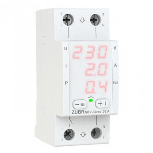 Мультифункциональное реле ZUBR MF2 имеет компактный корпус шириной 2 модуля. Благодаря трем цифровым экранам одновременно отображает значение напряжения, тока и мощности, что очень удобно при контроле всех параметров одновременно. В режиме ожидания можно настроить яркость экрана. В реле ZUBR MF2 объединил в себе широкий функционал: контроль напряжения, тока и мощности, а также возможность углубленных настроек.