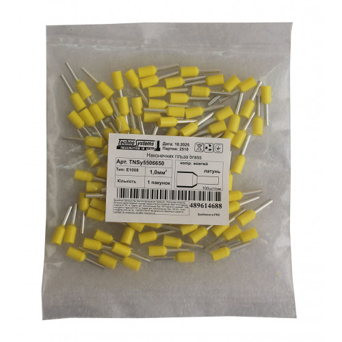 Наконечник гільза Е1008 brass 1мм2 жовтий. Якість та низька ціна від українського бренду TNSy.