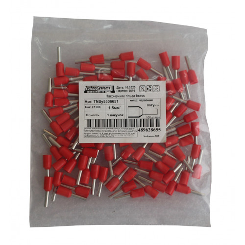 Наконечник гільза Е1508 brass 1,5мм2 червоний. Якість та низька ціна від українського бренду TNSy.
