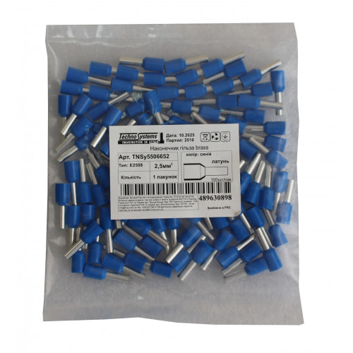 Наконечник гільза Е2508 brass 2,5мм2 синій. Якість та низька ціна від українського бренду TNSy.