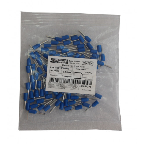 Наконечник гільза Е7508 brass 0,75мм2 синій. Якість та низька ціна від українського бренду TNSy.