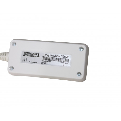 Подовжувач побутовий типу П25W 2 місця 2Р/ 5 метрів 2х1мм2 б/з товарного знаку Techno Systems (далі - подовжувач) призначений для підключення кількох електричних споживачів до однофазної електричної мережі напругою 230 В частоти 50 Гц.