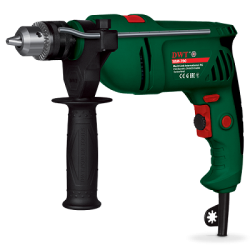 Ударний дриль DWT SBM-780. DWT SBM-780 – ударний дриль підвищеної потужності, підлоги професійного класу (Semi-Pro), із зубчатівцевим патроном, системою електронного контролю оборотів з механічною установкою та функцією реверсу. Дриль ДВТ заслужив прихильність до себе у побутових користувачів невибагливістю та довговічністю, а професійні споживачі відзначили ефективність інструменту з ідеальним співвідношенням «ціна-якість».. Інструмент із гарантією в інтернет-магазині Електро-Харків.