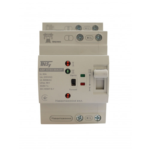Автоматичний перемикач АВР ATS4 80A 2P – призначений для роботи в електричних мережах змінного струму номінальною напругою 240В/415В частотою 50/60Гц, номінальний струм від 6 до 80А.