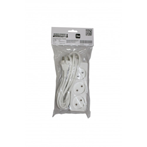 Подовжувач П33W 3 місця 2Р/ 3 метрів 2х1мм2 б/з. Якість та низька ціна від українського бренду TNSy.